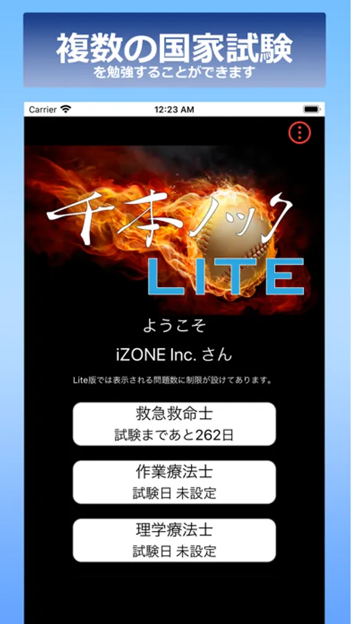この度は「国家試験対策アプリ 千本ノック!!LITE」をご利用くださりありがとうございます。(LITE版では問題が制限されています。)