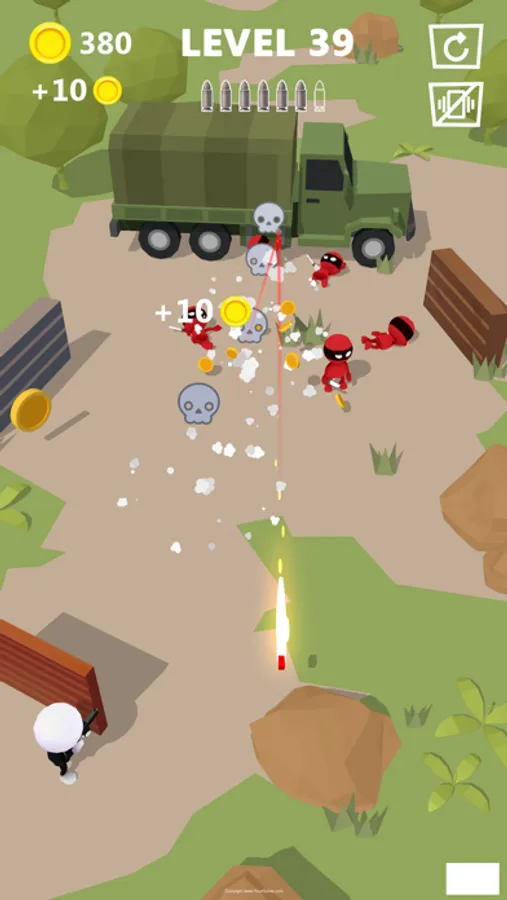 In this additive game you need to set up trajectory and shoot in time, while only your target on the fire line. You have limited shots for each mission, so be accurate shooter.