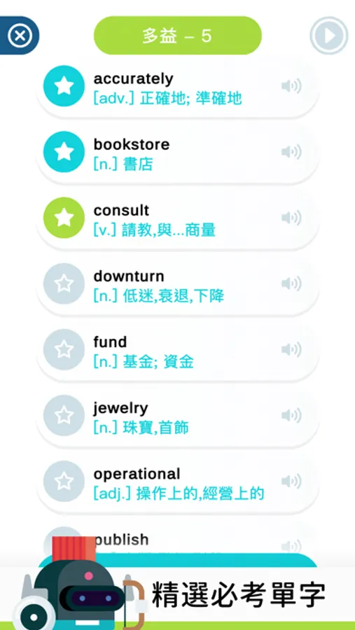 - 字義、拼字、聽力多種題型學習!