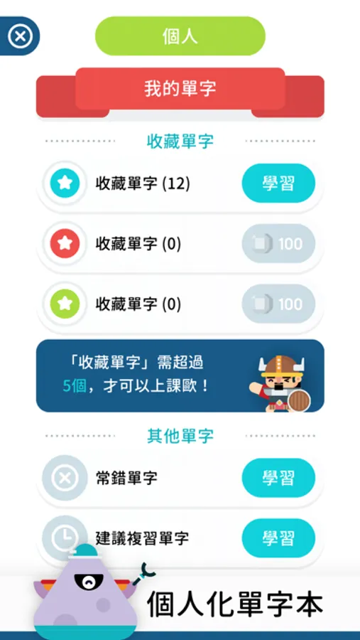 - 培養「單字英雄」,伴您學習永不孤單!