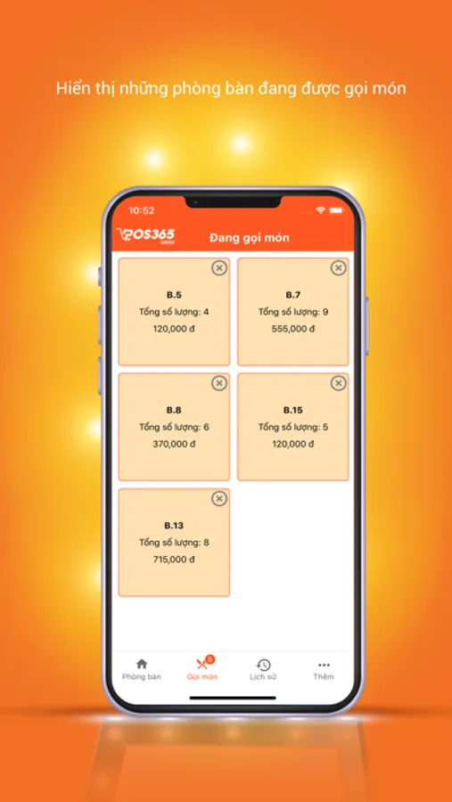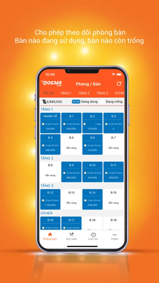 Sử dụng POS365 - Order giúp nhân viên phục vụ có thể theo dõi tình trạng phòng bàn một cách thuận tiện, dễ dàng biết được phòng bàn nào đang dùng, phòng nào còn trống nhân viên phục vụ có thể sắp xếp bàn cho khách ngồi một cách nhanh chóng, thuận tiện.