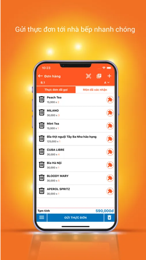 Sau khi gọi xong món cho khách, nhân viên phục vụ có thể gửi món xuống bếp ngay tại bàn mà không mất thời gian di chuyển xuống bếp.