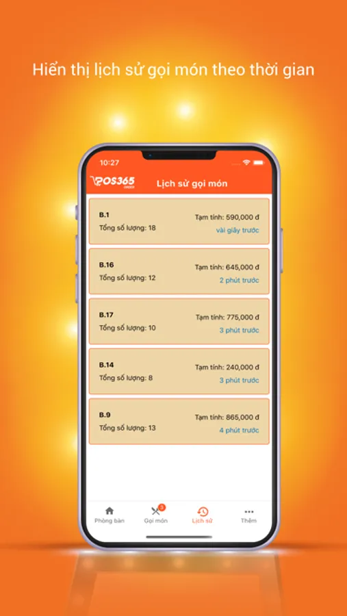 Sau khi gọi món cho khách, nhân viên phục vụ có thể dễ dàng tra soát lịch sử thông tin món đã gọi theo từng bàn, giúp cho cửa hàng giảm thiểu thất thoát cho một cách tối đa.