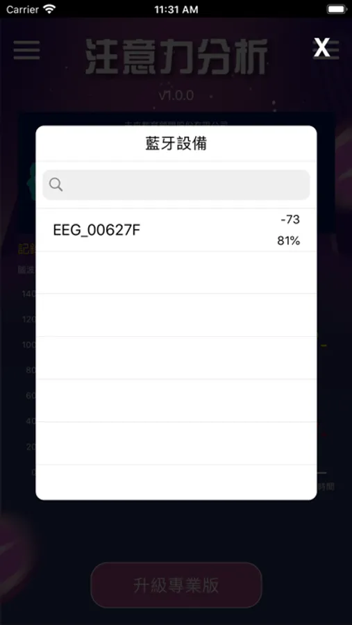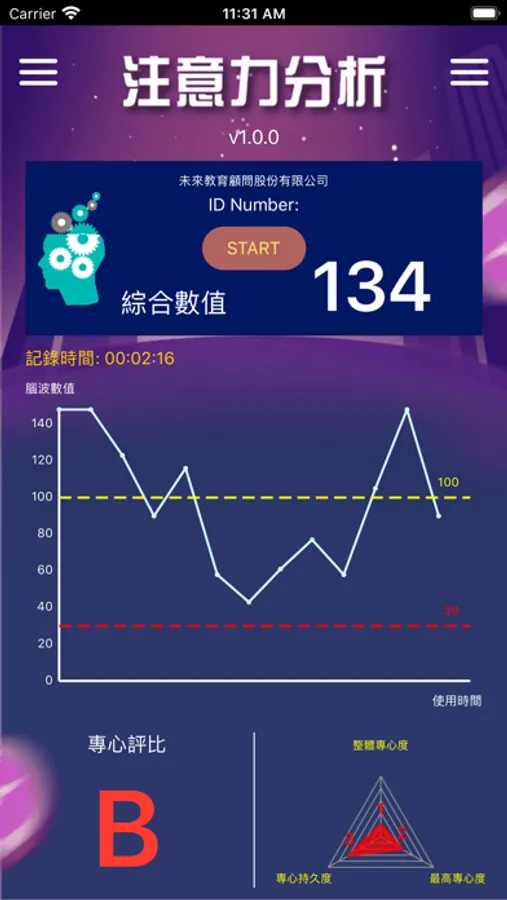 這個APP是用來分析使用者的注意力等級,分析過程需搭配專用的腦波儀,