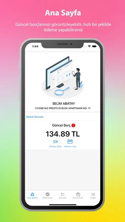 Güncel borcunuz ana sayfanızda görüntülenir ve dilerseniz detayına erişebilir, dilerseniz hemen toplam tutarı ödeyebilirsiniz.