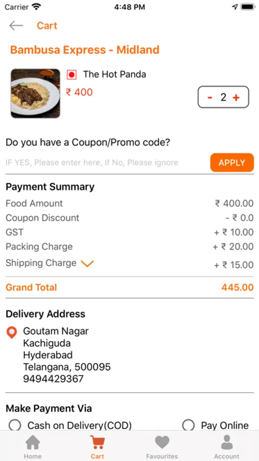 Lastly! regarding payment method for your order, you can conveniently pay either through Cash On Delivery (COD) OR through Online Payment.