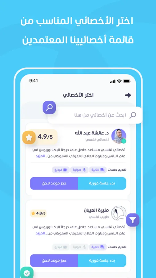 - حرية الاختيار في الجلسات ( صوتية أو نصية أو مرئية).