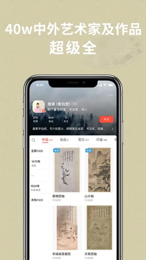 同样App是一款包含了高清国画书法,艺术品欣赏,博物馆展览,最新拍卖信,息是从事收藏、拍卖、投资、研究、学习的得力助手。