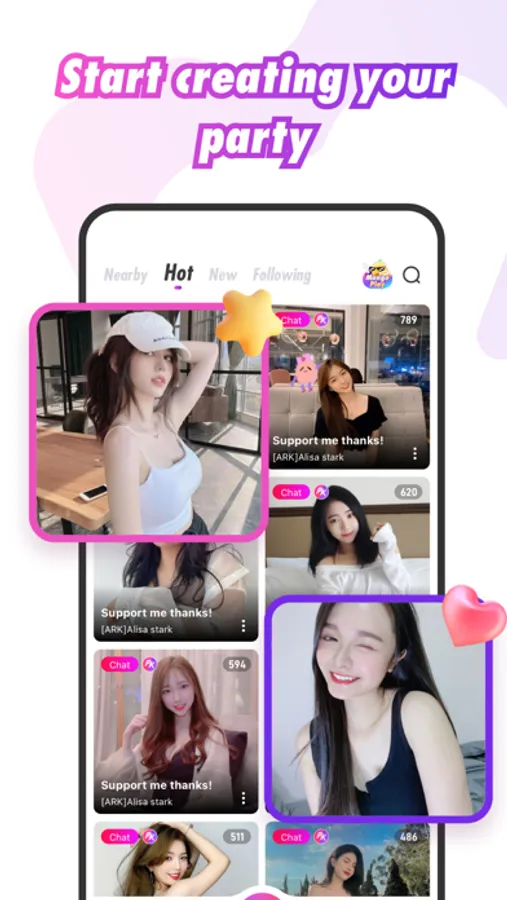 Express your love and support to the hosts with a variety of fancy and beautiful animated gifts. Engage in Guest Live sessions, where you can choose Audio Join or Video Join to chat and make friends with broadcasters. Plus, enjoy games in the chat room to have fun and win attention.