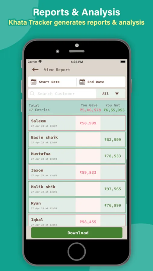 • Manage Khata Book Reports by Daily/Monthly/Yearly: Customize your Khata Book reports by filtering them daily, monthly, or yearly, giving you a clear snapshot of your financial progress.