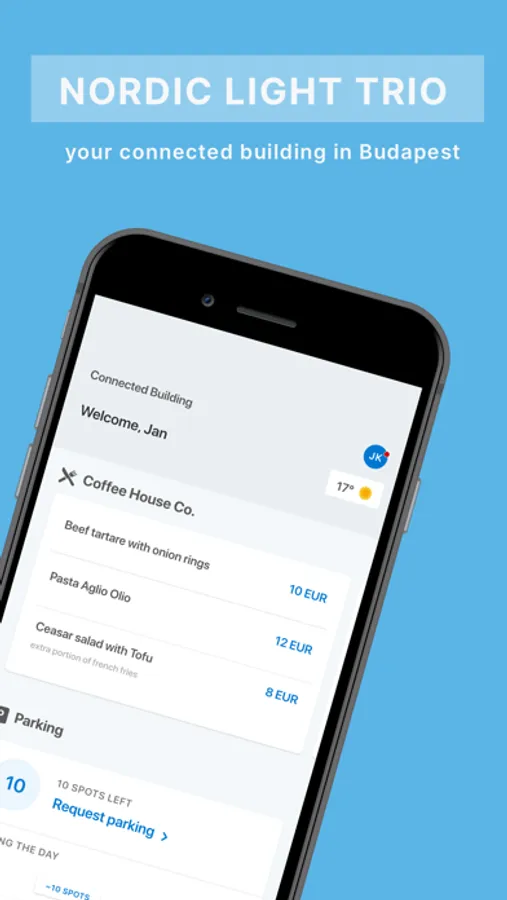 Nordic Light Trio app is a community application with integrated building services such as access and parking for the Nordic Light Trio project in Budapest, Hungary.