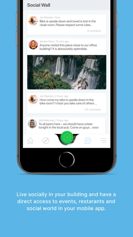 With the app you can easily invite guests to your office, enjoy cardless mobile access and discover office surroundings. Stay in touch with people in the building with in-app messaging.