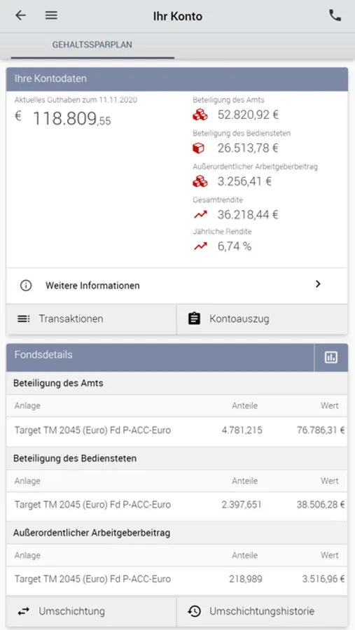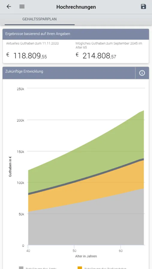 Behalten Sie jederzeit den Gesamtüberblick über Ihren Gehaltssparplan. Nutzen Sie die interaktive Hochrechnung zur Entwicklung Ihres Guthabens. Die SSP-App ermöglicht Ihnen den einfachen Überblick über Ihr Konto, mobil und rund um die Uhr.