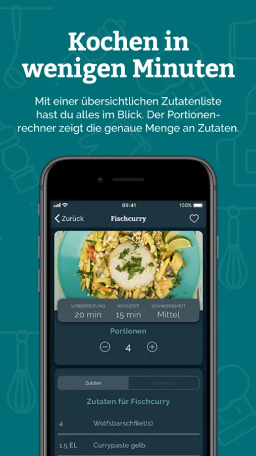 Alle Rezepte zeigen dir auf einen Blick wie lange du für das ausgewählte Gericht benötigst und wie viel Zeit du dir für die Vorbereitungen nehmen solltest. Wenn du einmal für mehrere Freunde oder für deine ganze Familie kochst, hilft dir der Portionenrechner immer die genaue Menge der einzelnen Zutaten zu ermitteln. So kannst du genau das einkaufen, was du auch wirklich für das Gericht benötigst.