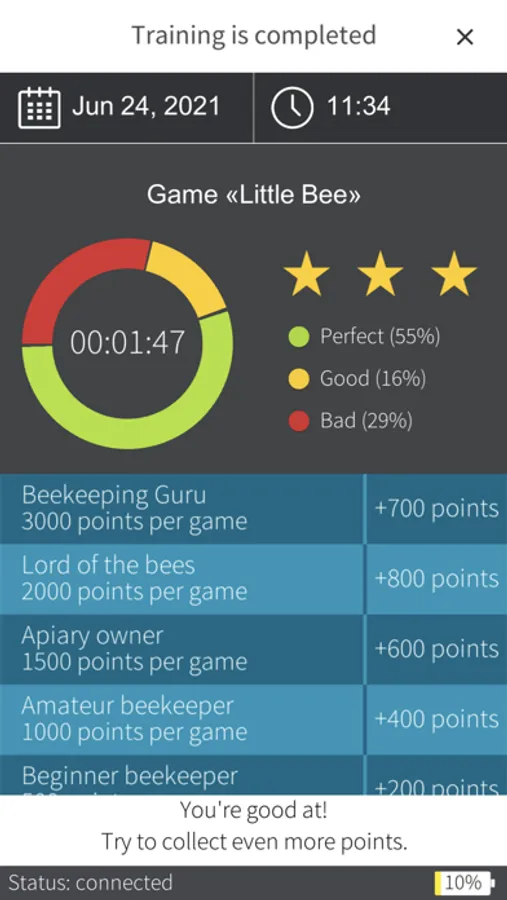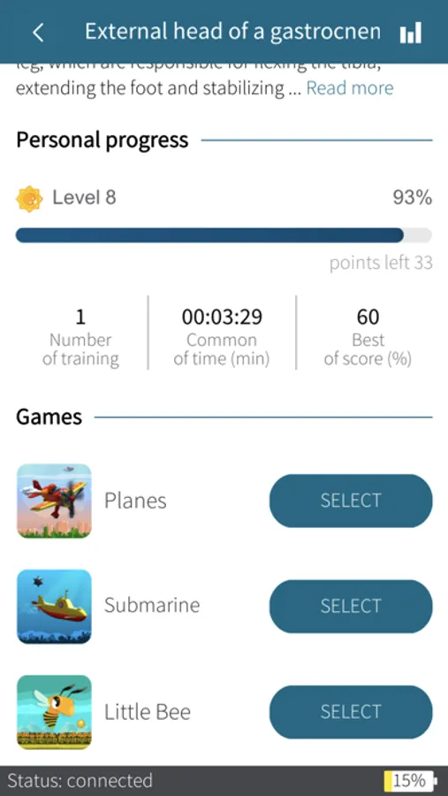 The application works with "Callibri" sensor that instantly evaluates muscle tone level (the EMG signal) and the app visualizes muscle activity in the form of a game situation.