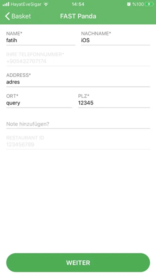 - Geben Sie Ihre Lieblingsrestaurants ID ein