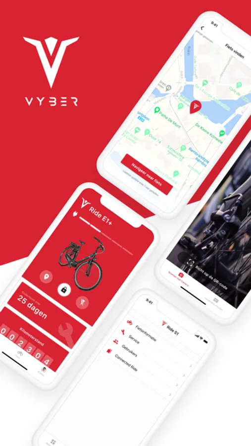 Met Vyber Connected Ride® wordt fietsen een stuk leuker! Met onze unieke App kun je snel eenvoudig jouw SmartBike terugvinden of de status van de batterij checken. Je kunt zelfs op afstand jouw SmartBike uitschakelen als deze gestolen is.
