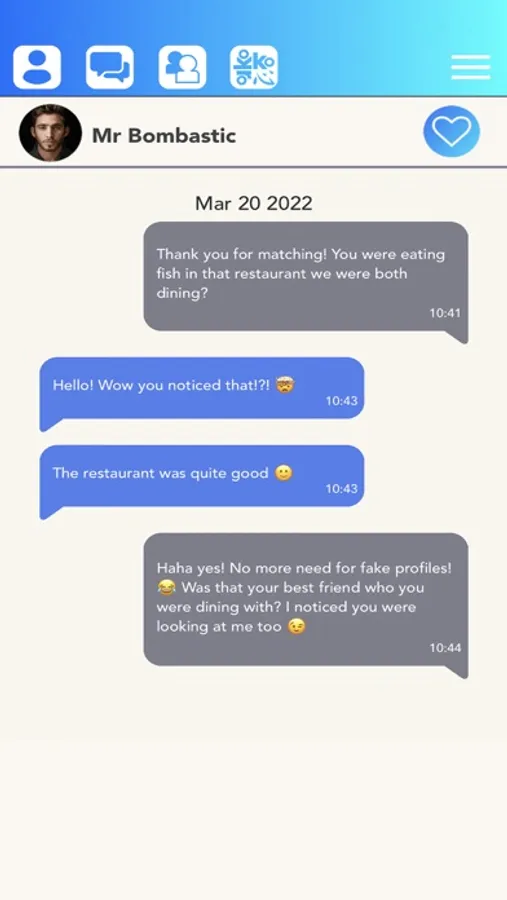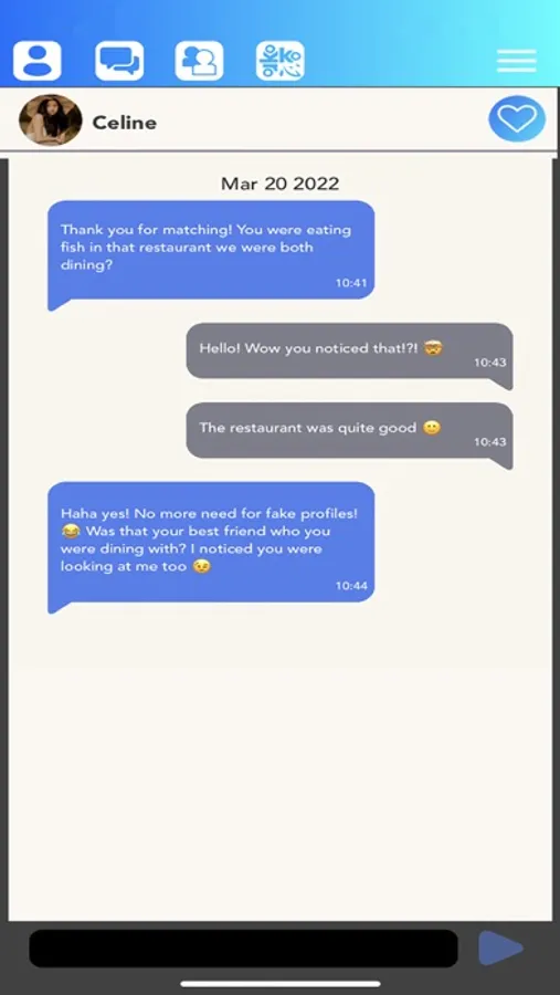 Are you fed up wasting your precious time by texting with some fake profiles but instead you want to talk to the girl or boy you have spotted in real life in your close proximity, like on a party, bus or train trip, in a museum, beach resort, etc…? Then Kokoro is the app for you.