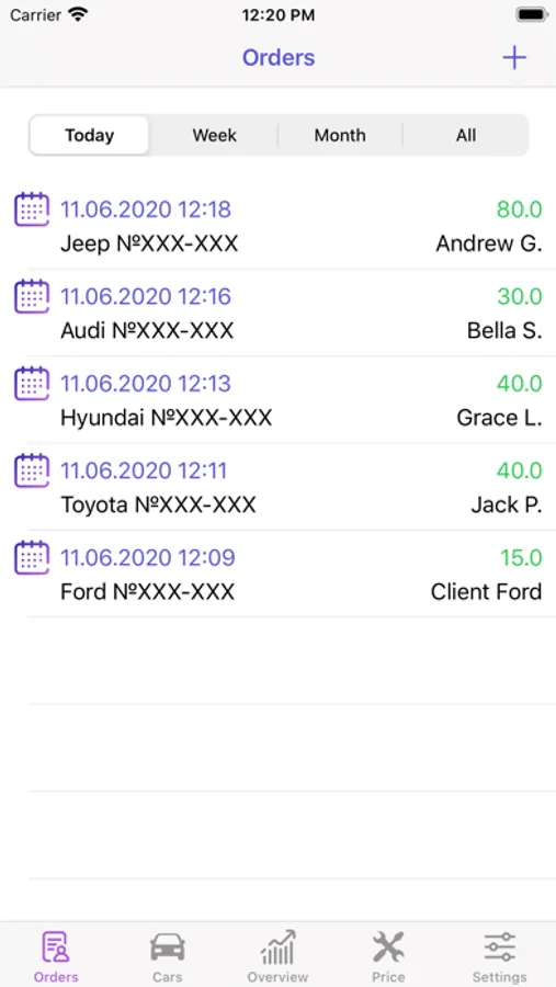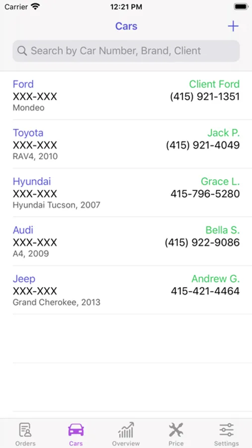 * Auto & Clients - customer cards, information about the Car, the Client, and the car service documents. You can use the card to make a phone call to the Client.