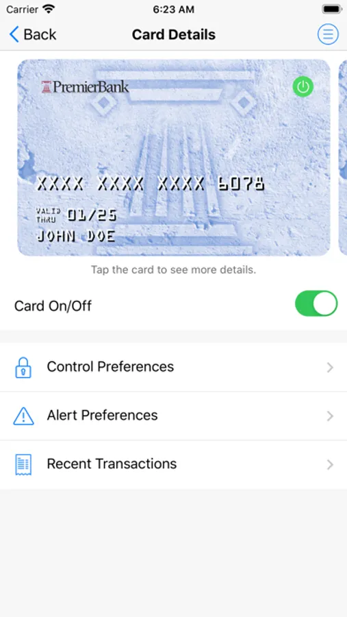 PremierBank Card Secure protects your debit cards by sending transaction alerts and enabling you to define when, where and how your cards are used. Download to your smartphone, then set your preferences to monitor and manage your cards.