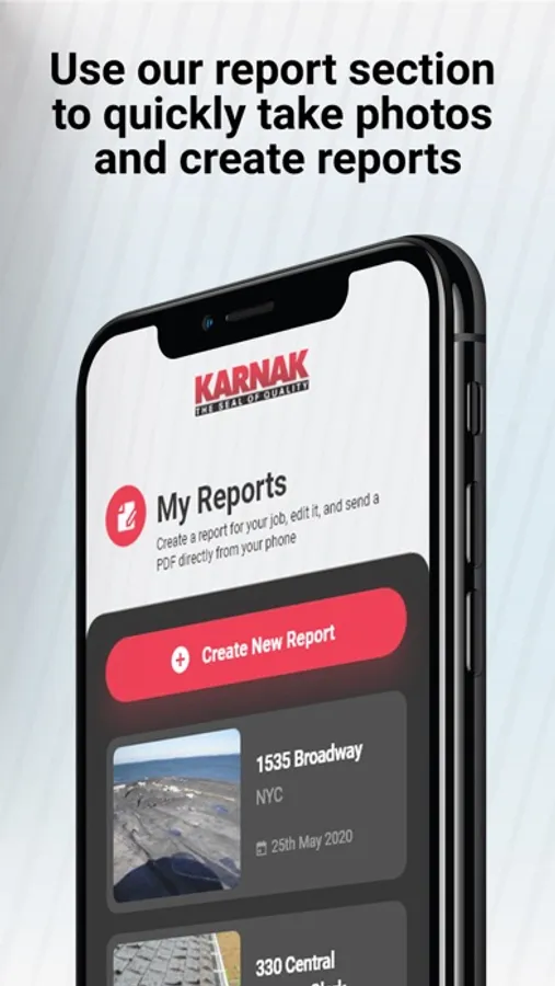 The new Karnak app brings together the best features of our website with new and powerful mobile tools for the on-the-go roofing professional. Designed with contractors, building owners, salesmen, distributors, and technical experts in mind, this app allows you to 1) Search specific Karnak products, 2) Find the right solution for your roofing job, and 3) Generate a customized report of roofing condition (with photos and voice-to-text) from your mobile phone.