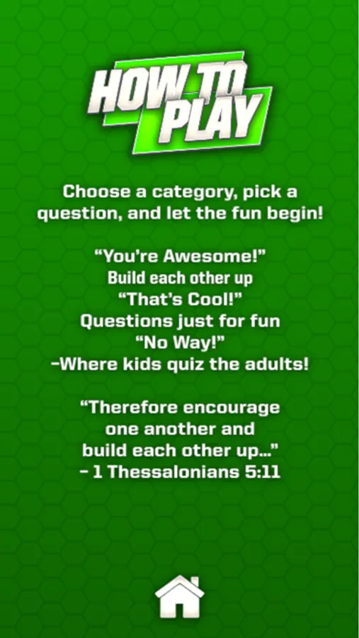 Select from three different categories of thought and conversation creating questions to learn more about each other, bond as a family and enrich your faith!