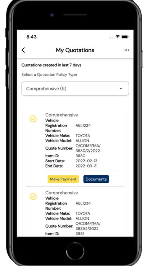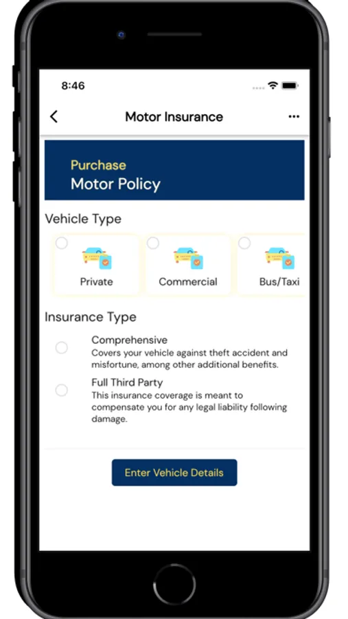 - You can buy your motor Insurance both Comprehensive and Third Party directly from the APP.