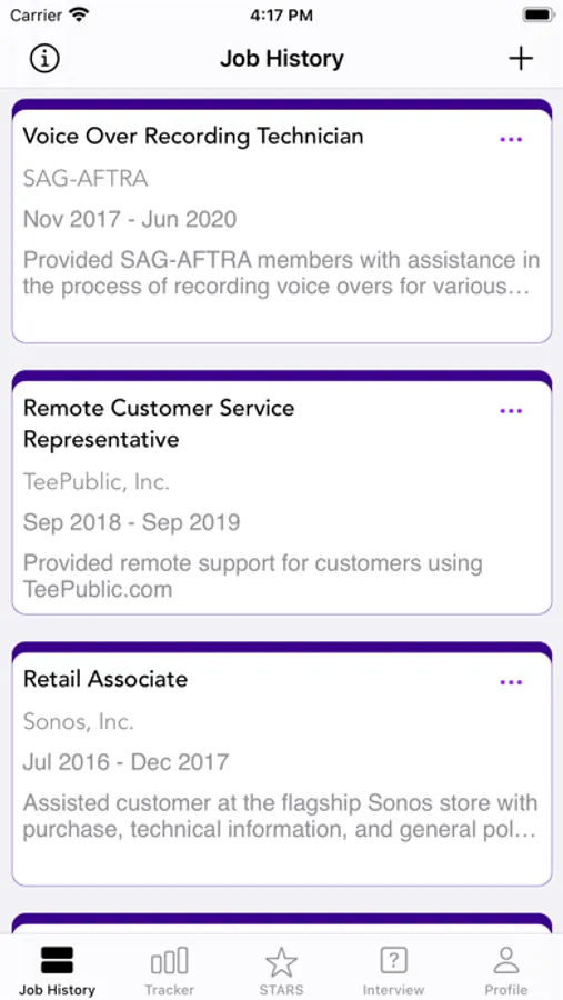 - Navigate through your job history with ease - whether reflecting on a specific job history, contact information or a situation to help aid you with your job applications.