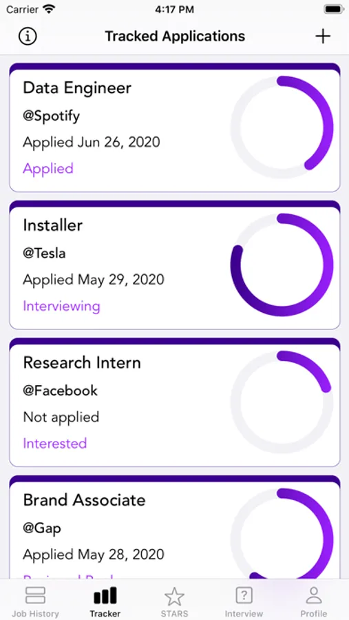 - Update the status of an application, save any interview dates and notes of your interviewing experience