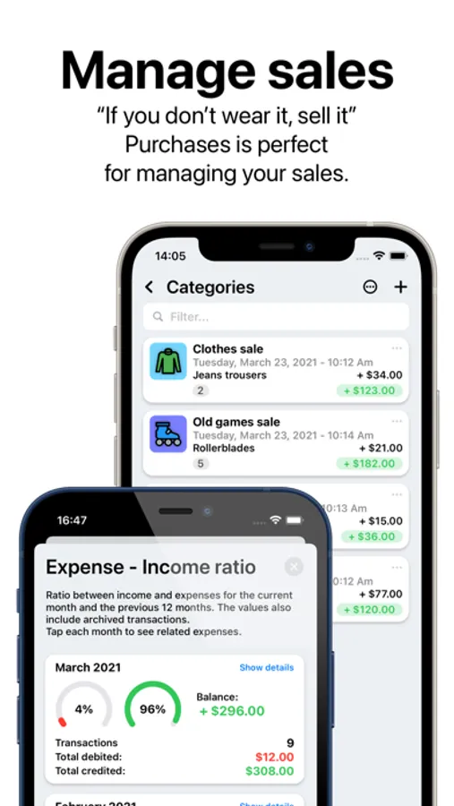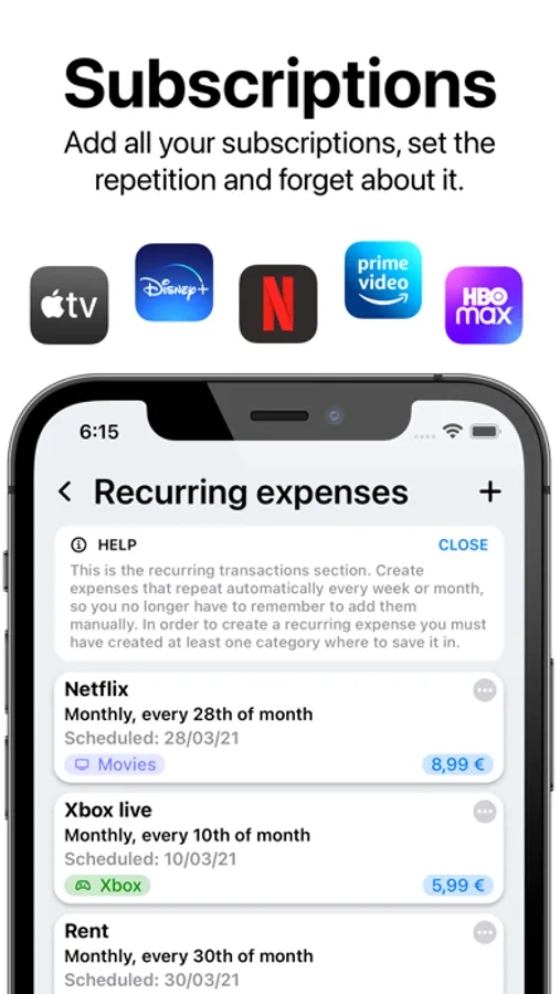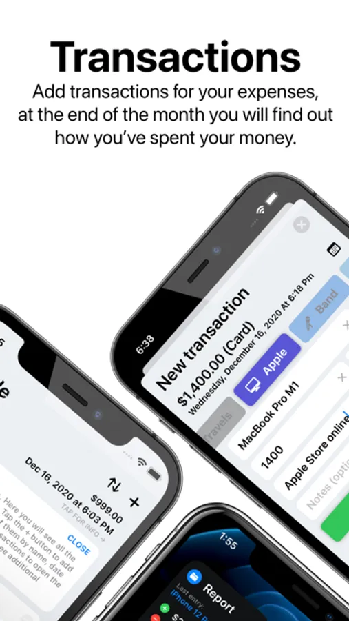 - Create the transaction defining a description, the money spent or received, where it happened and, if needed, a note.