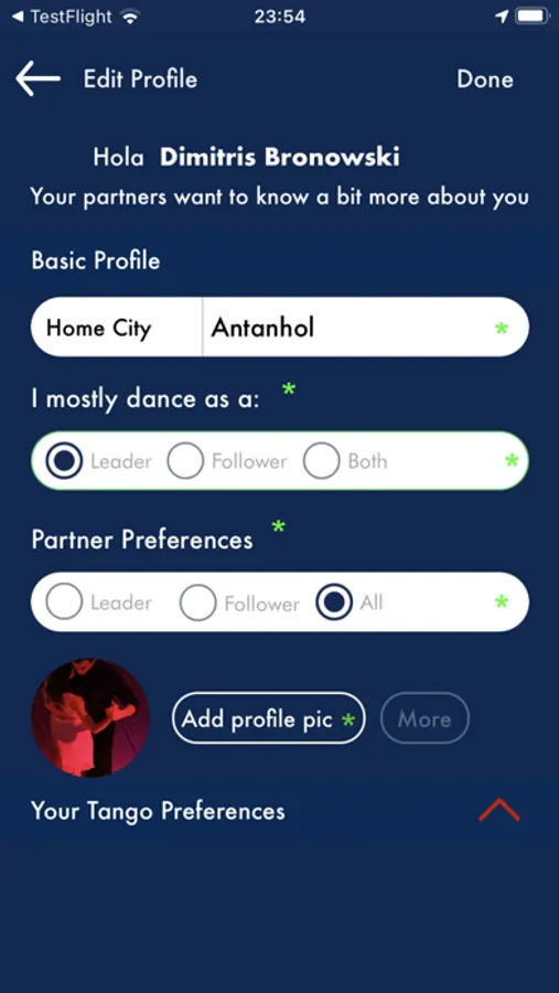 Tango lovers come from all walks of life. The people you are about to meet in our TangoPartner application are there with their heart filled with Tango. They love the dance, the music, the atmosphere and the social sensation. Most were in Buenos Aires at least once, tried empanadas, Media Lunas in La Viruta and surely shared a glass of Malbec.