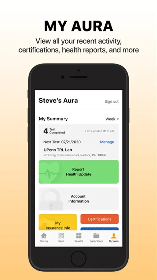 A Sequential Test Scheduling and Compliance Management Program for Companies, Schools and Long Term Care Facilities in the United States. Aura enables rapid registration in the field at our collection sites allowing employees, students and residents to get tested frequently by providing intuitive instructions for test scheduling, test locations, and wait times. The application will rapidly deliver results from our lab partners while maintaining HIPPA compliance.