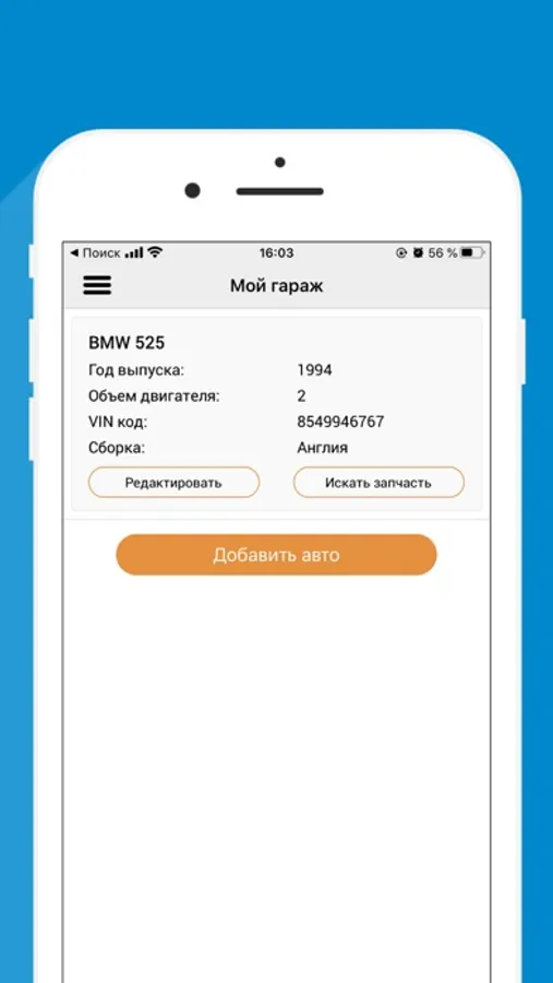 Приложение для поиска бу и контрактных автозапчастей.