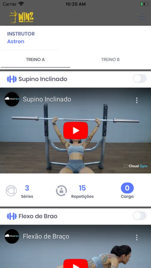 - Ficha de treino completa na tela do celular;