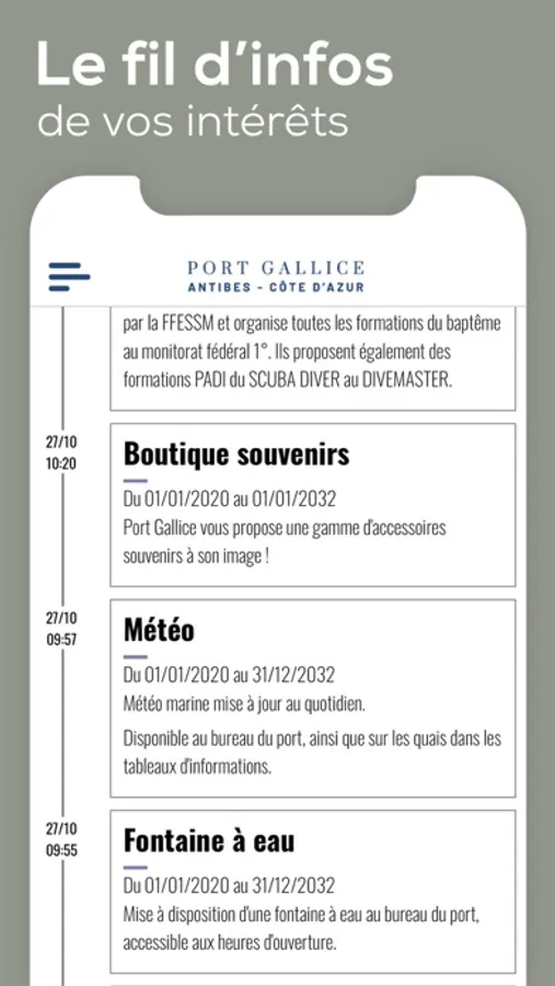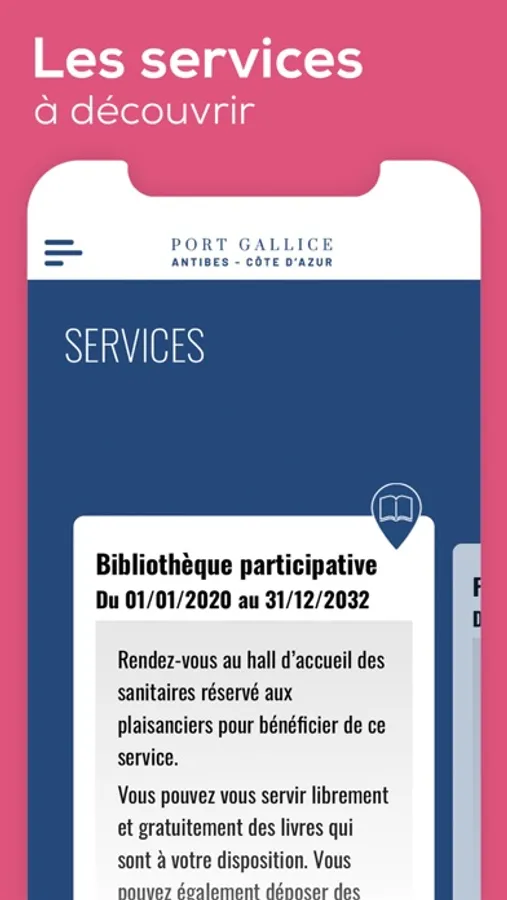 Découvrez le port sous un autre jour grâce à son application entièrement dédiée ; l’outil idéal pour vous informer des derniers services, du calendrier des événements ou de la météo en temps réel. L’appli simplifie également votre quotidien et vos démarches administratives. Utilisez-la pour annoncer votre arrivée, votre départ ou actualiser vos informations.