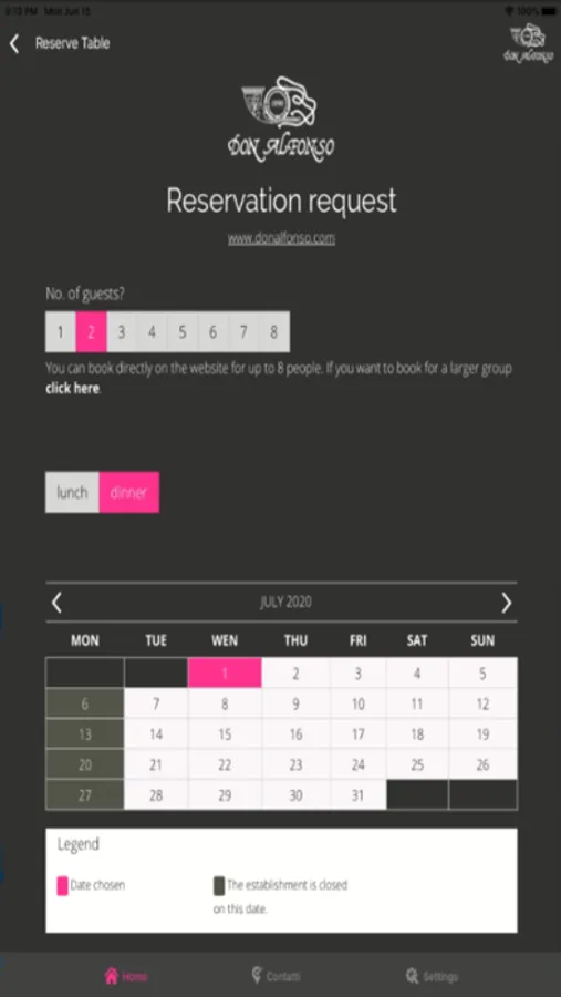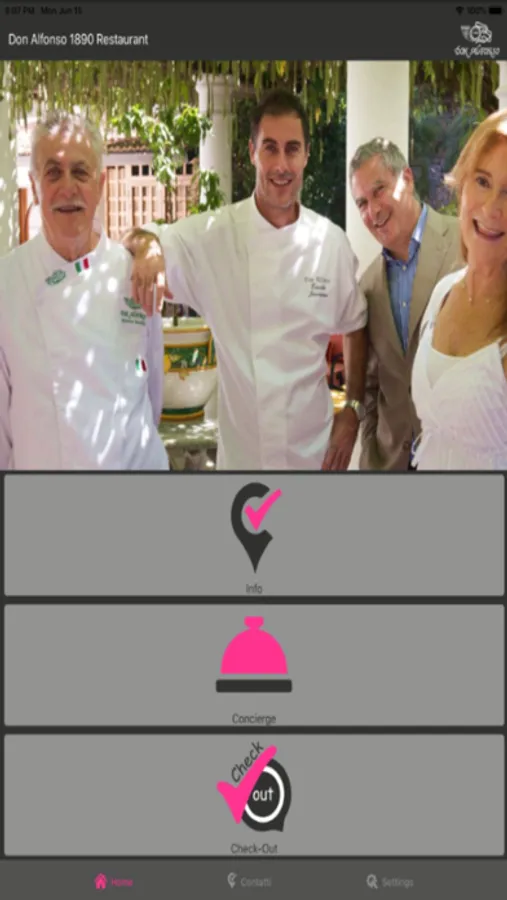 Don Alfonso 1890 is a app that allow our guest to have a better experience in our locationb. With the App they can have a lot information like general info, Location, room pictures and description and also if is enabled by login and password thay can have advanced features like the control of the bill and reservation and more the manager can dynamically update the information contents of the structure. The app may interact by web services with hotel PMS, transforming the App into a centralized container of functions and tools available to the Customer.