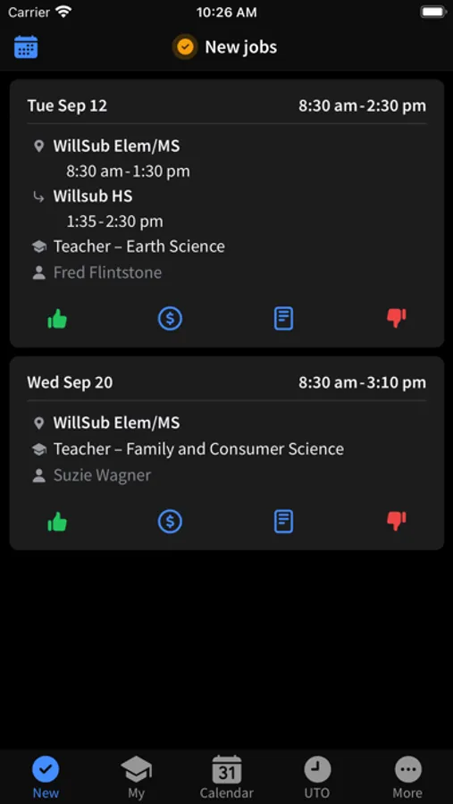 • View job history for the current and previous school year.