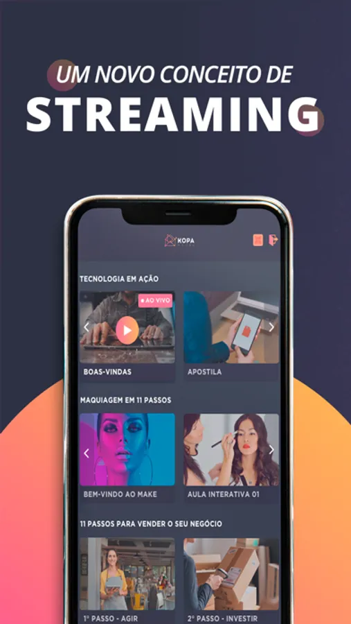 O Kopa é uma plataforma de streaming que possibilita ao usuário acesso à transmissão de cursos e eventos fechados sem a necessidade de download.