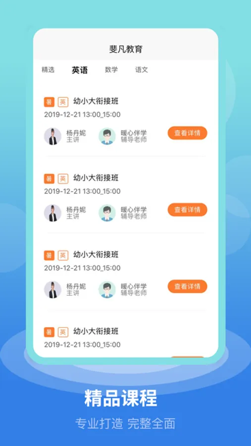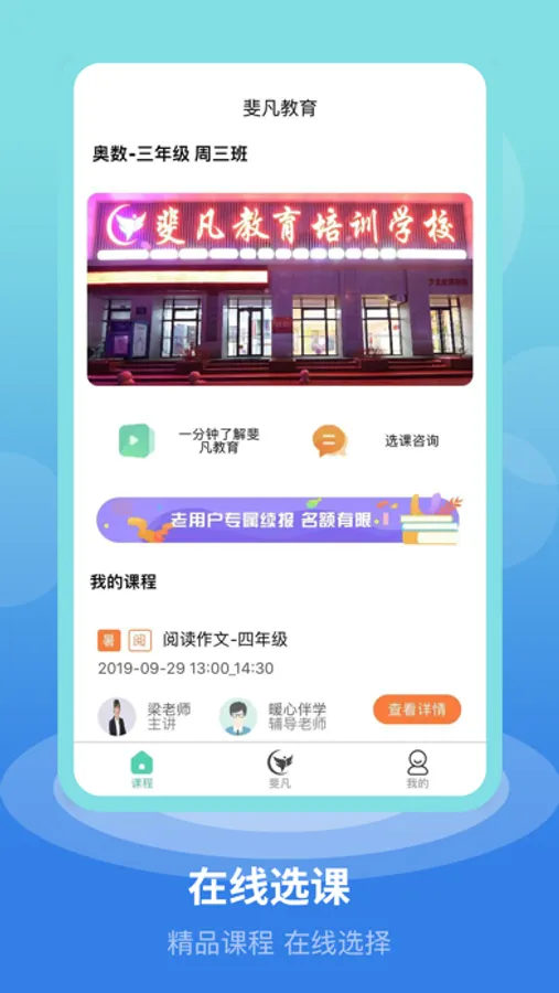 斐凡教育自主研发线上教育平台现推出全新的教学模式——双师课堂。课堂形式为主讲老师线上高效直播授课,与学生实时互动;辅导老师线上指导答疑、跟进学生听课和学习情况。丰富的课程内容,小班授课,真正做到让孩子听得懂,学得会。