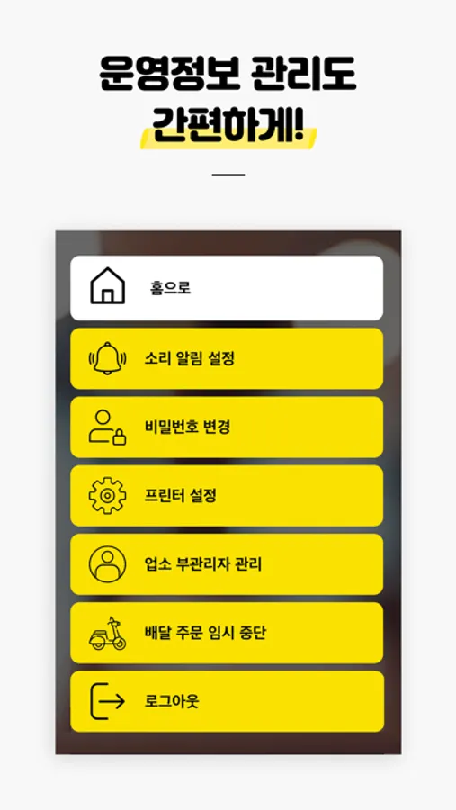 주문접수, 가게 운영정보 관리가 가능하며, 꾸준히 기능을 업데이트 하고 있습니다.