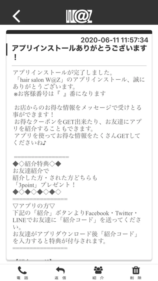 W@ZのアプリをSNSを通じてお友達に紹介する事ができます。