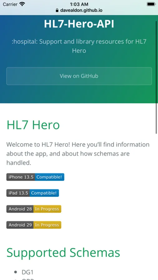 Need to parse some HL7 on the go? HL7 Hero is here to take care of that! Supporting common 2.X schemas, you can quickly enter an HL7 record and view it in a friendly way.