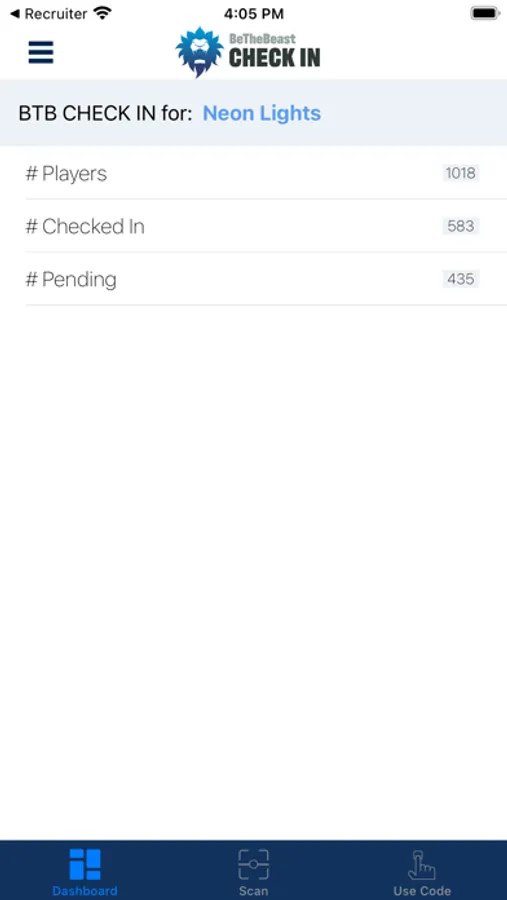 BeTheBeast's BTB Check In app provides quick and easy contact-less event "check in" for high school and club sports tournament operators using the BTB Event Operator platform to manage their events.