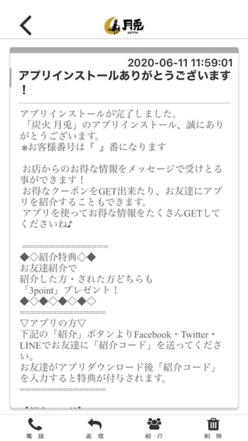 月兎のアプリをSNSを通じてお友達に紹介する事ができます。