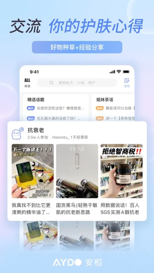 在这里,你能认识到喜好类似的护肤伙伴,能学习到护肤达人们分享的诀窍,能发挥长处解答别人的困惑,能和大家一起监督打卡,养成良好护肤习惯……这里是护肤的学校,也是乐园,随心所欲,畅所欲言。