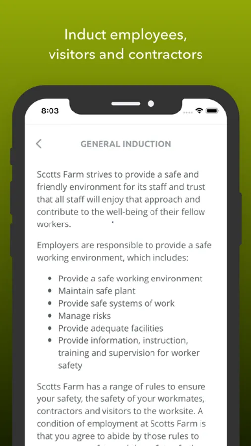 Workplace safety doesn't need to be hard to understand and for the safety of everyone at your workplace it needs to be simple. The Workplace Safe app gives you everything you need to induct employees, contractors and visitors, acknowledge policies, view standard operating procedure, complete pre-start checks, report hazards and manage incidents.