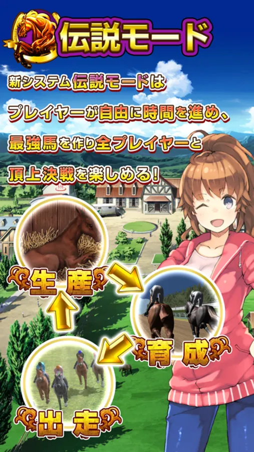 好きな時間に好きなだけやり込め、他のプレイヤーの最強馬と対戦できる「伝説モード」の2つのモードを搭載!