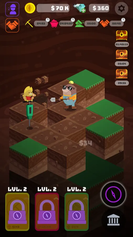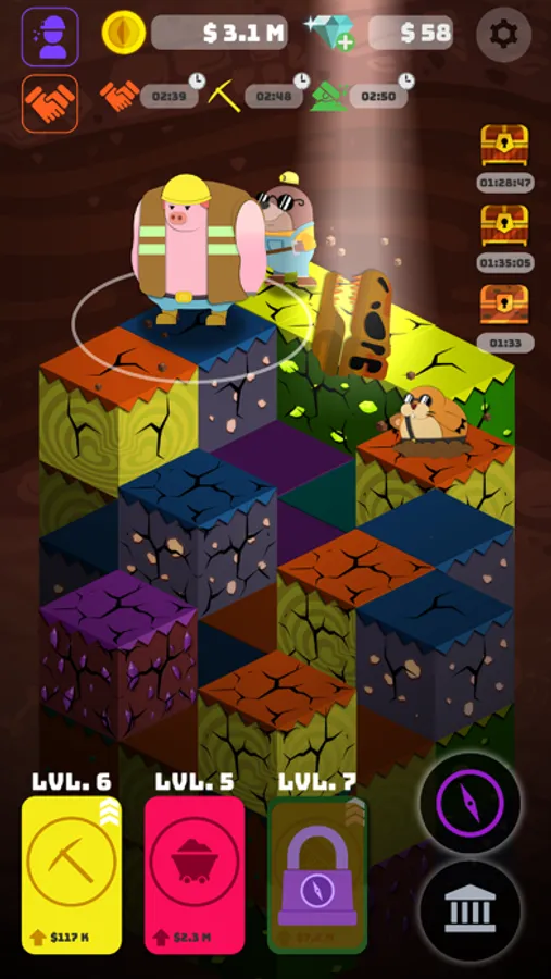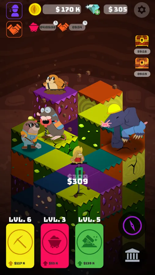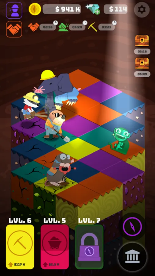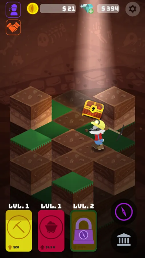 Partner with a Honey Badger, and go through the gold mine, find diamonds, silver or even treasure chests in these caves.