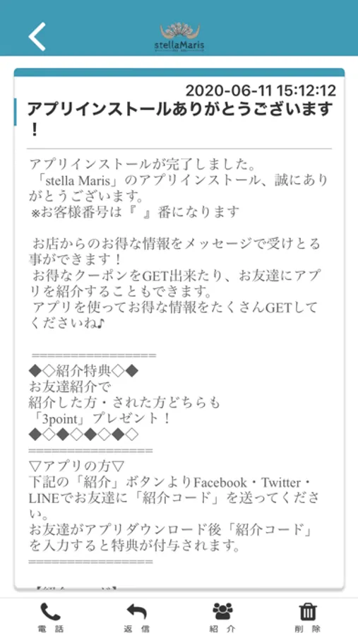 stellaMarisのアプリをSNSを通じてお友達に紹介する事ができます。