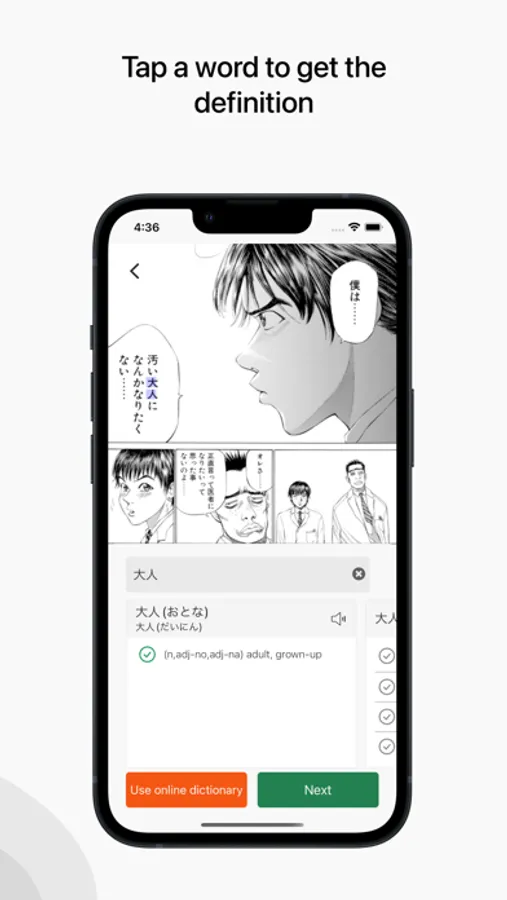 Take screenshots and pictures of movie subtitles, reader apps, websites, or books to learn and read Japanese on your commute, at school, or when you’re just taking a break.